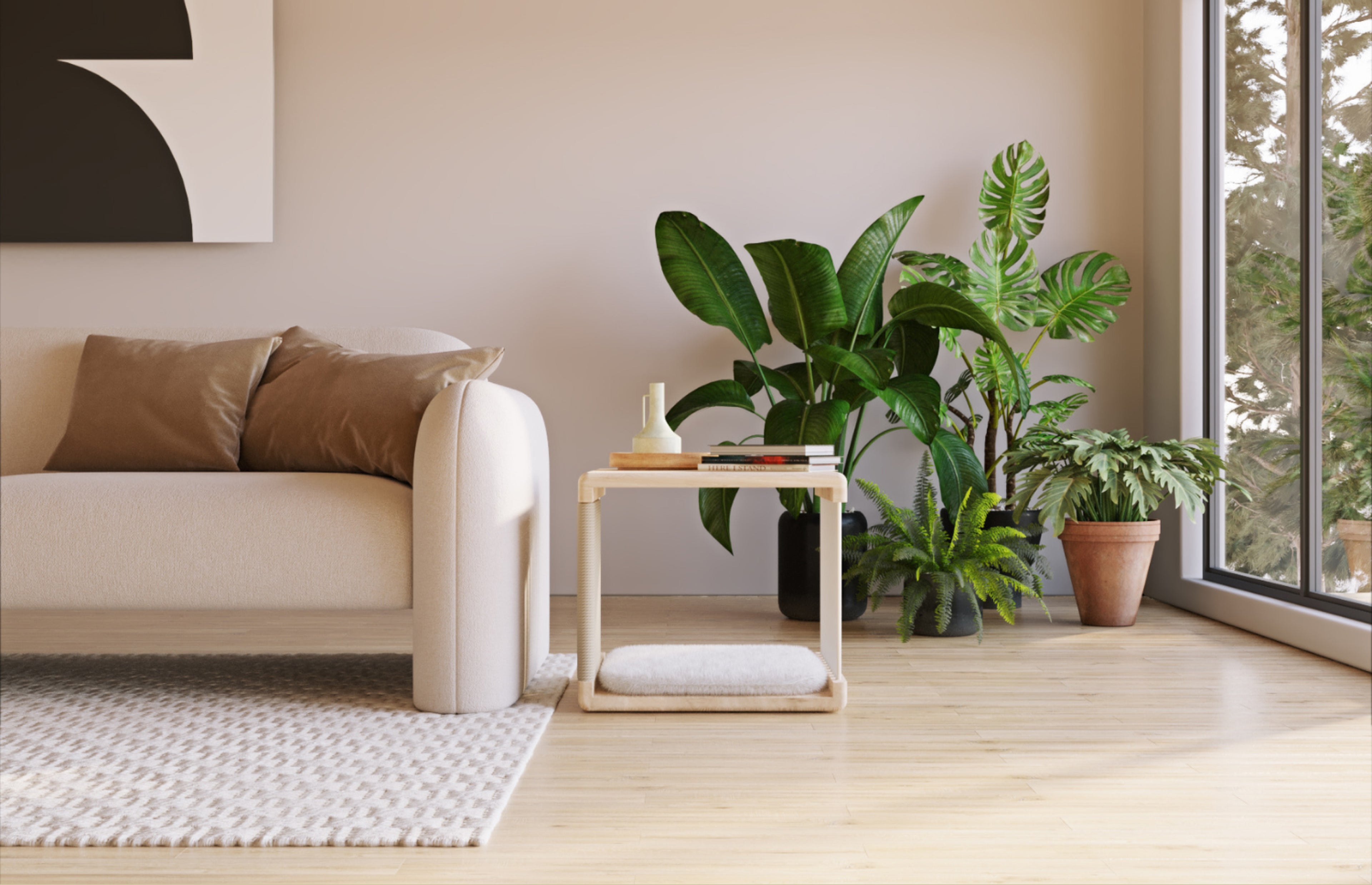 Unlike bulky cat trees or unattractive cat scratching posts, our modern cat side table enhances your interior design while catering to your cat's natural instincts. Crafted from FSC-rated timber, the Norton Bedside Table outlasts traditional cat furniture. You can keep your cat royalty cosy all year and finally say goodbye to shabby cardboard cat scratchers and cat trees. But Norton's appeal doesn't stop at looks. Its versatility is unmatched—place it in your bedroom, living room, or any space where you and your cat happily coexist. Its multi-functionality also saves precious floor space, making it perfect for those who live in condos, apartments or anyone who values efficient design.